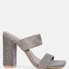 Clear heel detail sandals with ruched straps and rhinestone details look gorgeous. The mid-high spool heels are perfect for brunches and casual occasions. They are versatile and can be paired with anything in your wardrobe making them your new go-to pair for everyday errands and occassions!