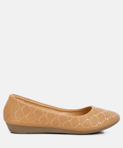Whether you’re dressing up for a special occasion or looking for comfortable and stylish everyday footwear, these ballerinas are a perfect choice. Their combination of faux leather, cushioned insoles, and beautiful embellishments makes them a versatile addition to your shoe collection.