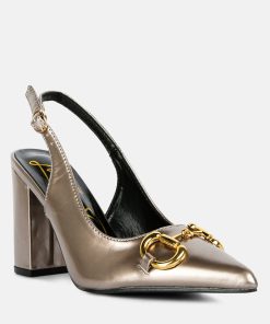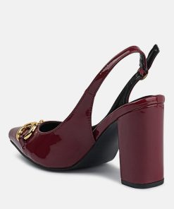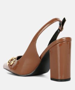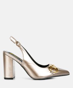 With gold detail on the front, a buckled slingback and high-block heels, these slingback sandals make for the best footwear you can own! The sandals are contemporary, trendy, and sure to turn heads. The soft cushion insole cuts strain and offers comfort to the feet.