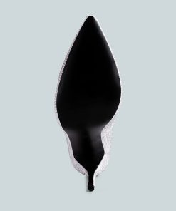 Beautified with sparkling diamante detailing, these high heels are not just shoes but a statement piece. These pumps are the perfect addition to your evening dress but wait. We didn’t stop at dazzling aesthetics; we care about your comfort, too, thus the light cushioned insole!