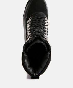 High Block Heeled suave Biker Boot in faux leather and microfiber panel is all edgy and chic! Comes with metallic eyelets which line up the top. The high chunky platform is height booster, reducing pressure on toes.