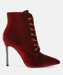 Stiletto High Heeled Velvet Boot comes with side zipper opening. The high heeled stiletto sandal in velevet is chic and luxurious.