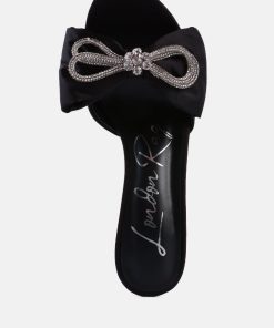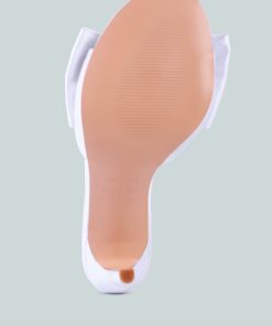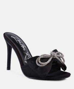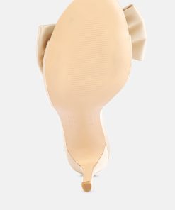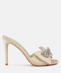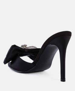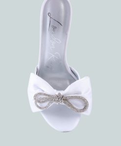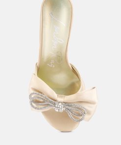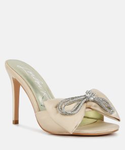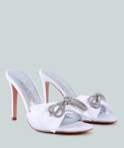 Behold the most precious and angelic pair of heels to exist. Perfect for brides who need to add an extra flare to their wedding heels. The satin bow strap is accessorised with a rhinestone embellished bow, creating a festive look. Perfect date night heels or formal events that require you to go the extra mile.