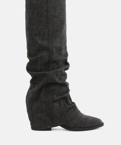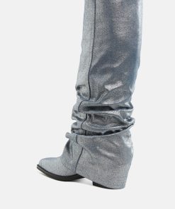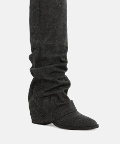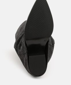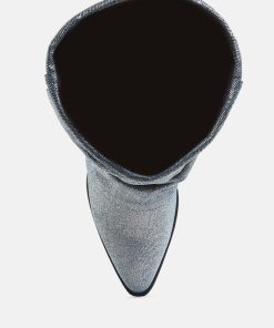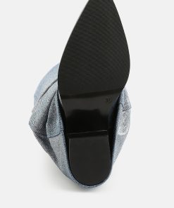 These ultra-chic denim ankle boots blend classic style with a modern take, featuring a comfortable block heel. Finished with a stylish slouchy silhouette, these pointed-toe beauties are the perfect match for mini dresses or partywear in your wardrobe!