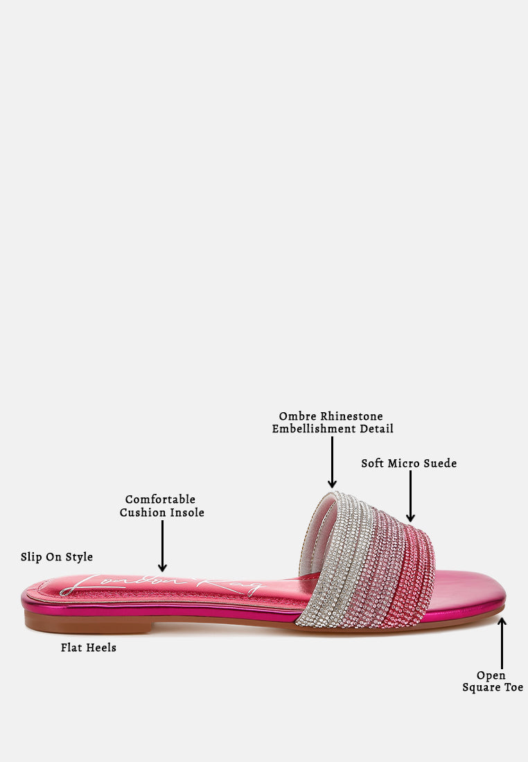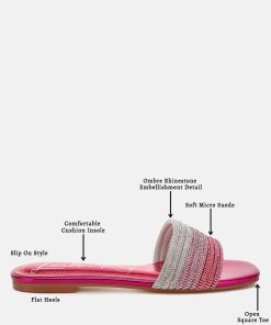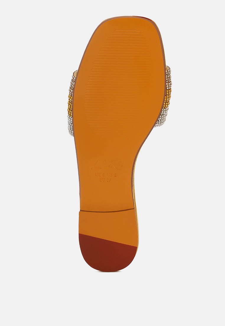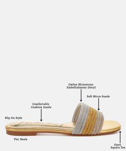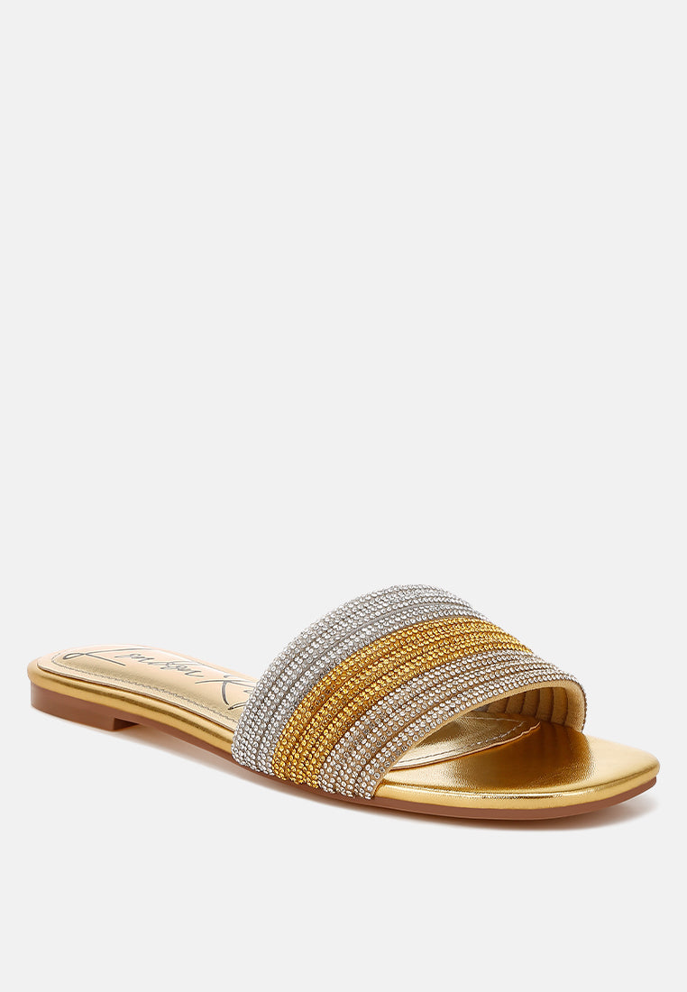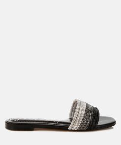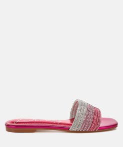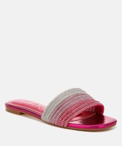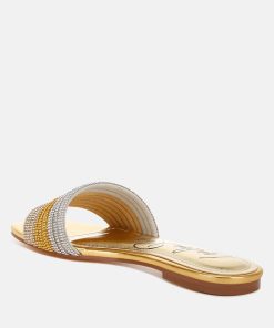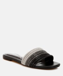Looking for a pair of flat sandals for comforting everyday use with a hint of sparkle? Walk in our intricate rhinestone-embellished flats, designed to complement a spring maxi dress, cut-off shorts, or a sundress.