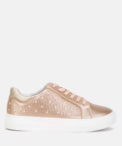 These party sneakers are the perfect choice for those looking to make a fashion statement while keeping comfort in mind. With their metallic faux leather, cushioned insoles, and stylish embellishments, they’re a versatile addition to your wardrobe.