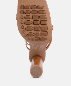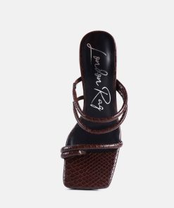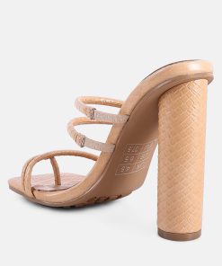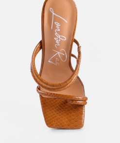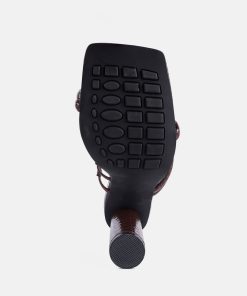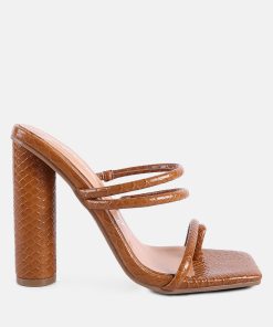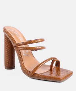 Made from patent croc textured faux leather, the high block-heeled sandals sliders are the epitome of urban chic and style combined! The dual straps will enhance your feet’s beauty while ensuring a snug fit. The heels come with a stylish toe ring detail on the front strap.