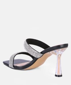 Adorn your feet with these rhinestone embellished strap slip on heels. These are perefect for the upcoming festive season and also pair perfectly withyour casual wardrobe. From club to brunch these one can get you through it all!