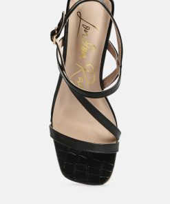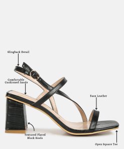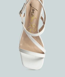 Women’s Shoes London Rag Effieo Croc Texture Block Heel Sandals | Off White
