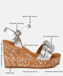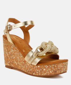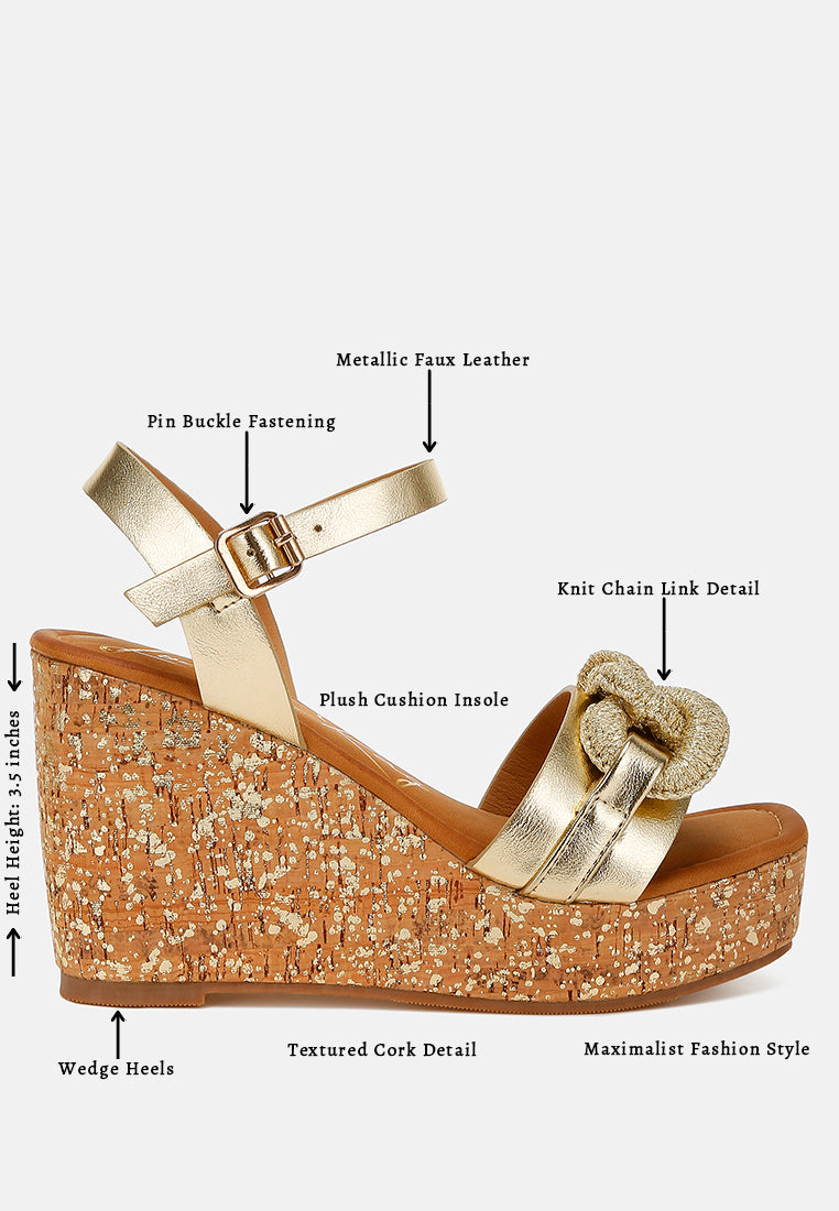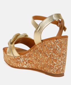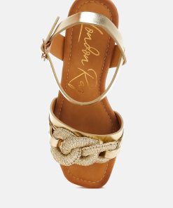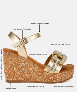 Women’s Shoes London Rag Emelda Chain Link Detail Wedge Sandals | Gold
