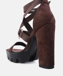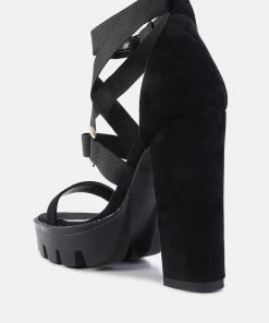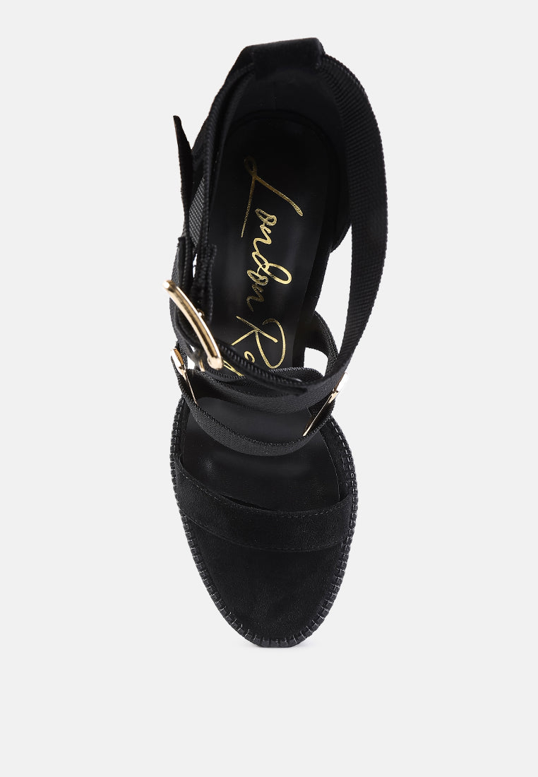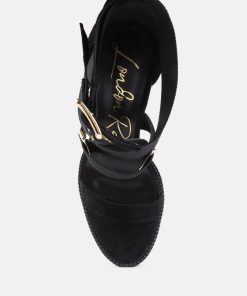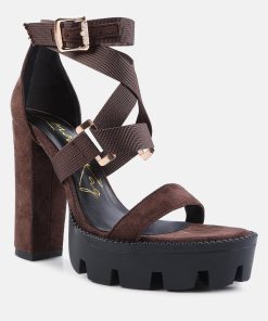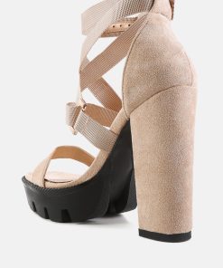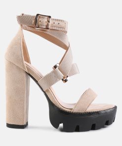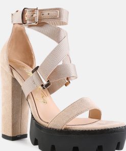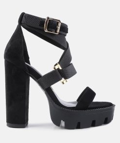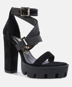 These high-platform heel sandals are fierce and fashionable, designed with harness straps that command attention. The shining gold buckles add a subtle touch of luxury, while the high and chunky heels make a bold statement. The cushioned innersole provides comfort and helps alleviate stress, making them a stylish and comfortable pick for all occasions.