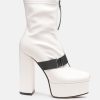 The heeled boots have a unique aesthetic with the metallic fantasy heel that accentuates the overall aesthetic of the boots while the shine of the patent faux leather upper adds another fashionable factor. The boots are perfect for when you want to be subtle yet impactful with your ensemble. The boots have comfortable cushion insoles that cut strain and offer a relaxed fit experience.