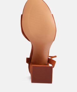 The triangular block heel sandals have a tie-up detail that makes them sexy and sleek, while the metal chain detail adds a fun aesthetic element to the strap. The thick block heels and cushion padded insole make the sandals comfortable to wear. These are perfect as party shoes, wedding guest shoes, bridal shoes, and much more.