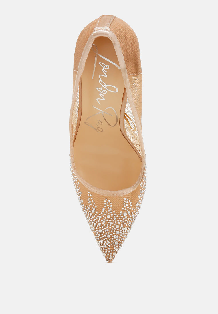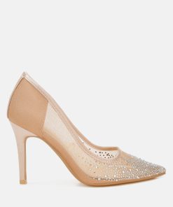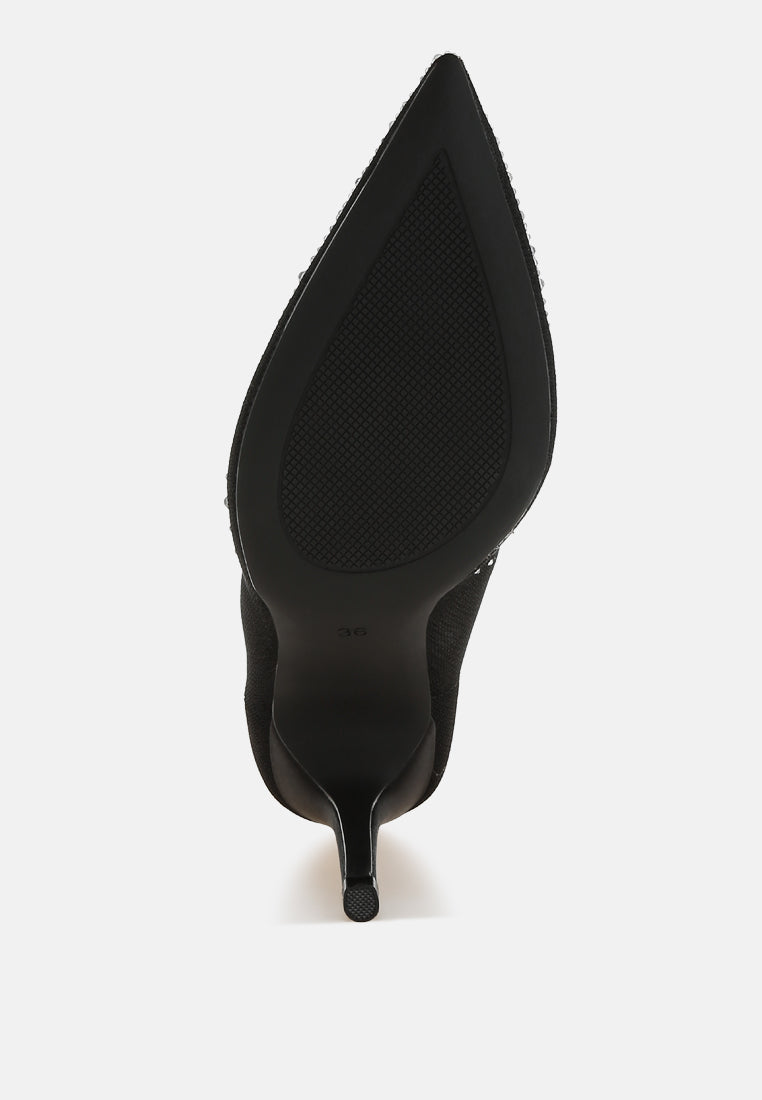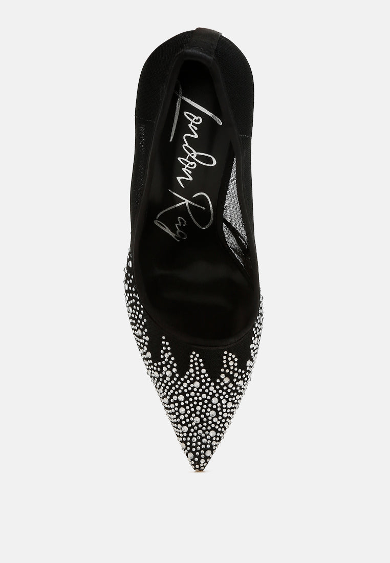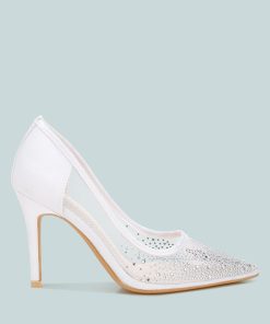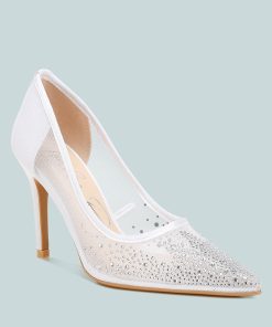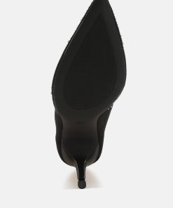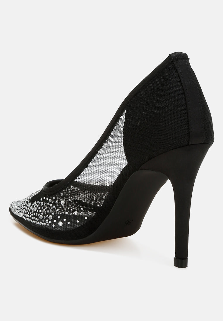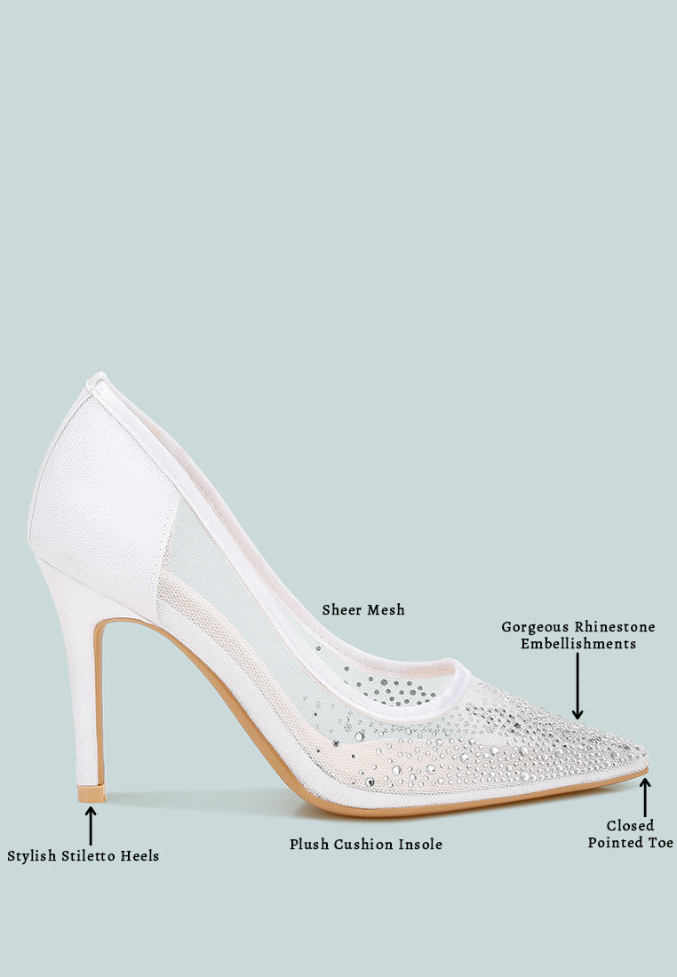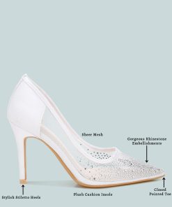 Meet the exquisite rhinestone-embellished pumps, bound to create a sizzling, spellbinding impression. The pumps feature tall stiletto heels, a closed pointed toe for added drama and plush cushion insoles for extra comfort. Ideal for parties, weddings, and romantic date nights.