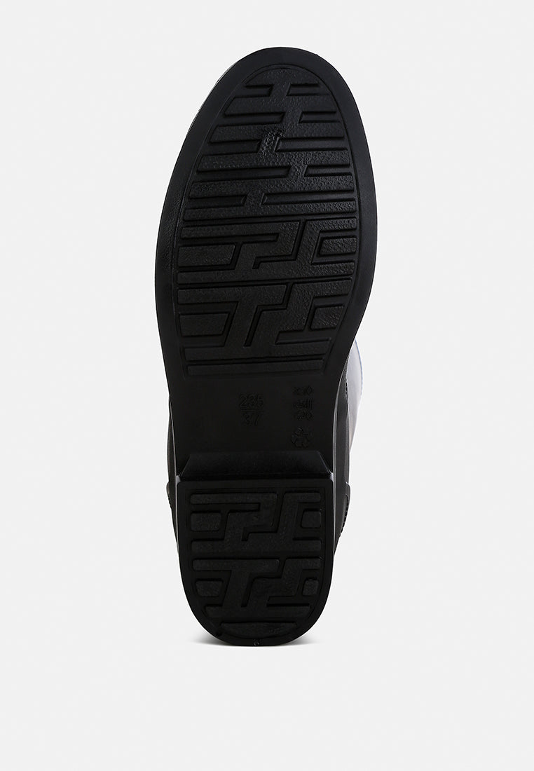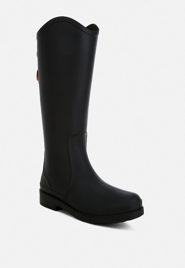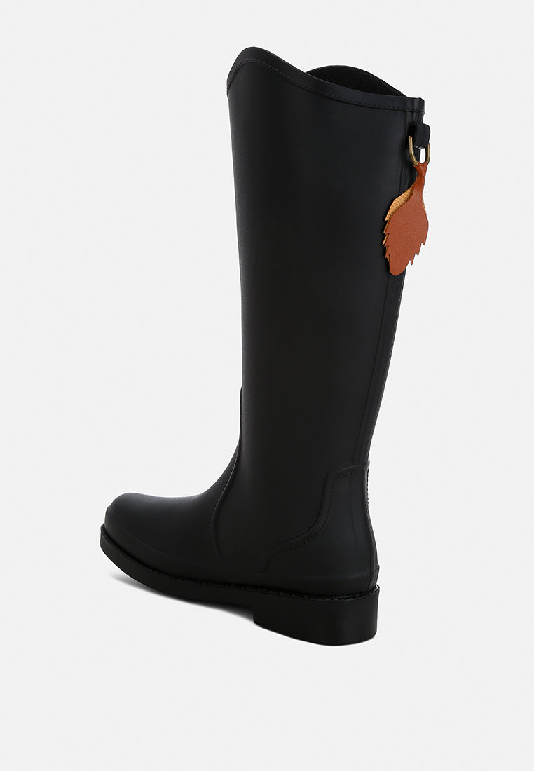 Simplistic, versatile, and chic, the calf boots are a statement piece with their eclectic design that stands out! The rain boots make a bold statement by themselves and the charm detail adds an intriguing element to the design! The perfect addition to your monsoon wardrobe!