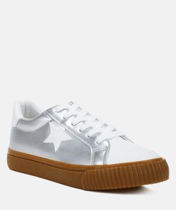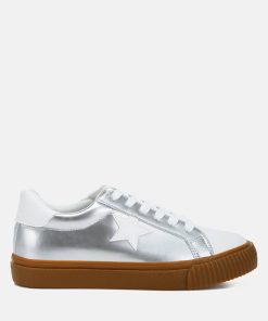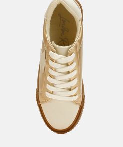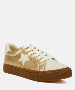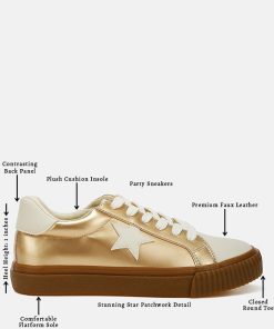 Women’s Shoes London Rag Jumping Jacks Metallic Faux Leather Star Sneakers | Gold