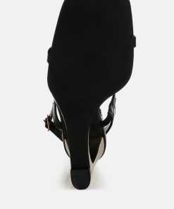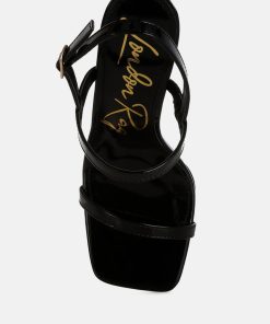 The sandals are ravishing with the eccentric fantasy wedge heel with a cut out detail and the patent shiny upper which elevates the visual appeal of the sandals. The plush cushion insole is comfortable and cut strain. The pin buckle fastening strap ensures a snug fit.