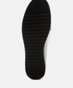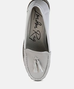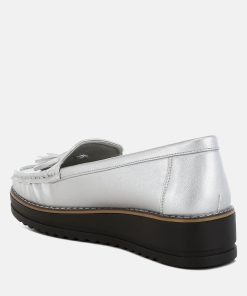 Experience our refined faux leather loafers with a chic tassel detail. These flatform faux leather loafers shine with a metallic finish and timeless mock stitch. Style these round-toe beauties with cigarette pants, chinos, or cozy loungewear for a look that’s sure to impress.