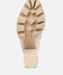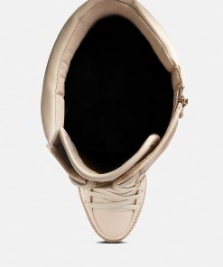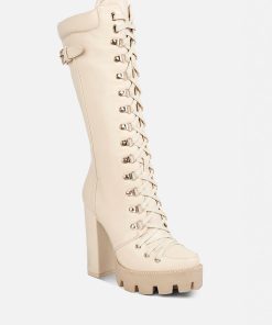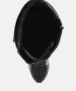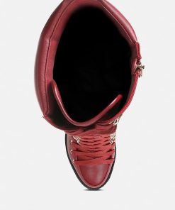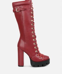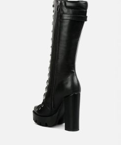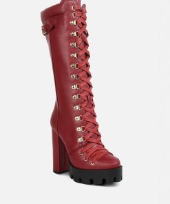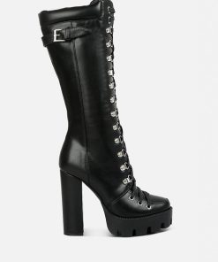 The cushion collared boots are all about being comfy and chic, and with the gorgeous eyelets details accentuating the visual aesthetic, the heeled boots give retro yet classy vibes. The lug soles are a trendy touch but complement well with the high heeled boots. A must-have for the holiday season, indeed!