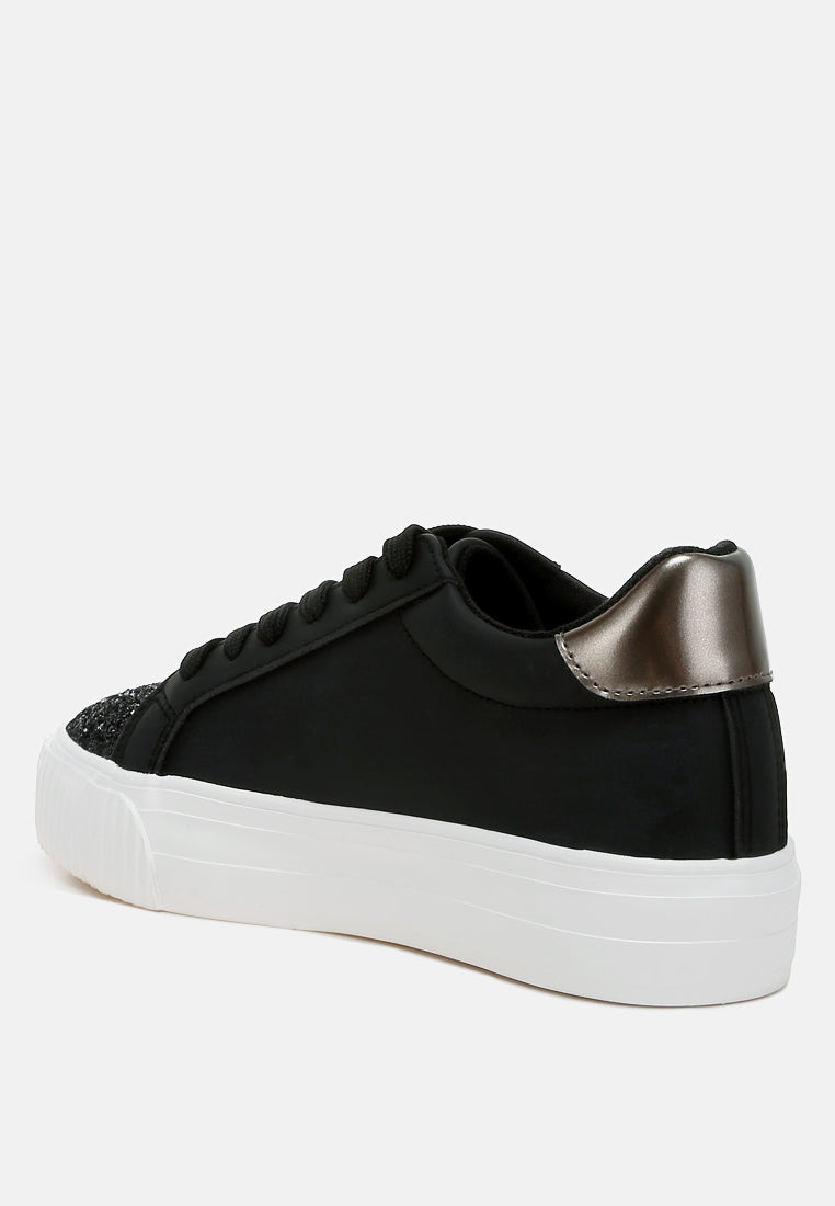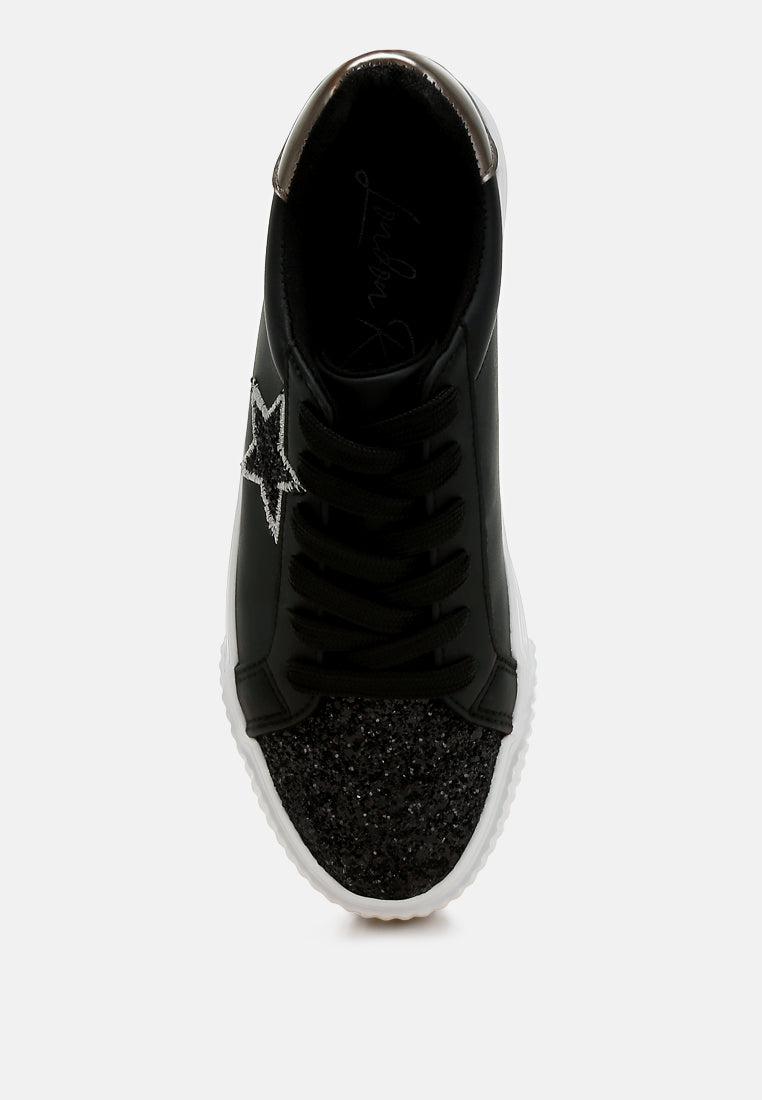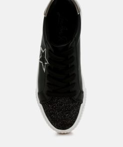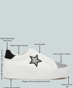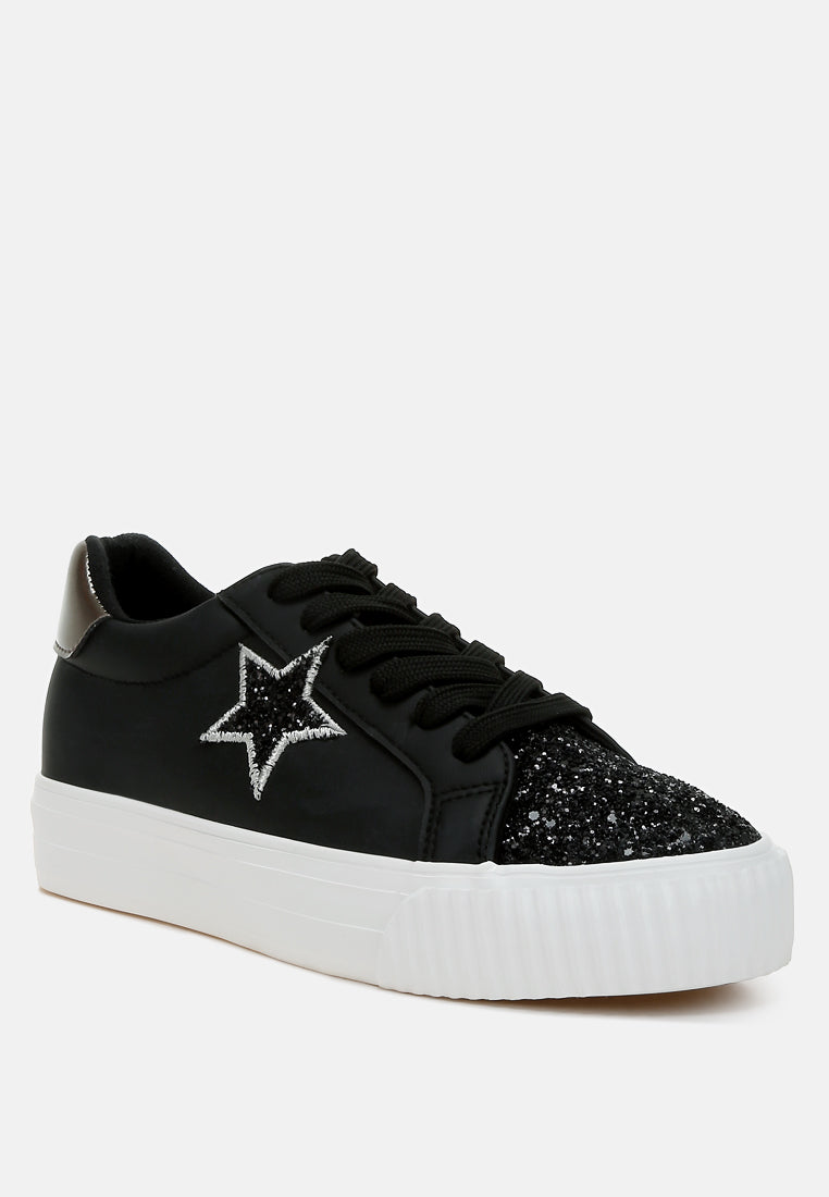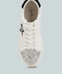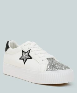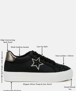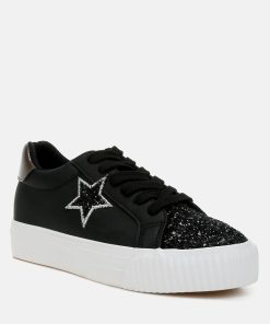 Elevate your sneaker game with these chunky star sneakers with a glitter patch vamp and a metallic counter, giving the sneakers an eclectic unique look. The sneakers give a secure and comfortable fit with the lace up design and comfortable cushion insole.