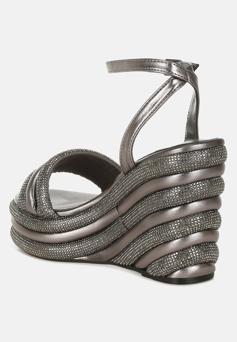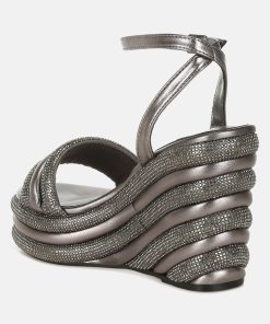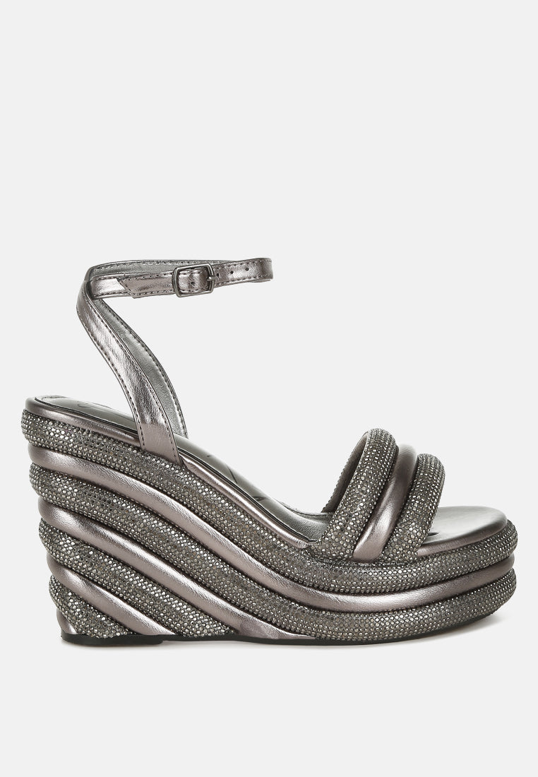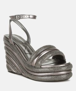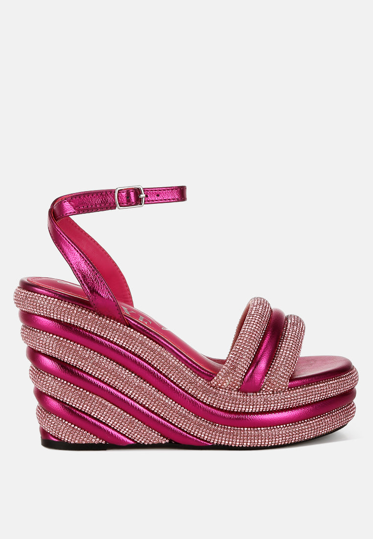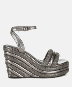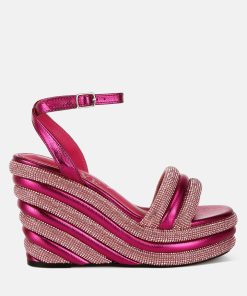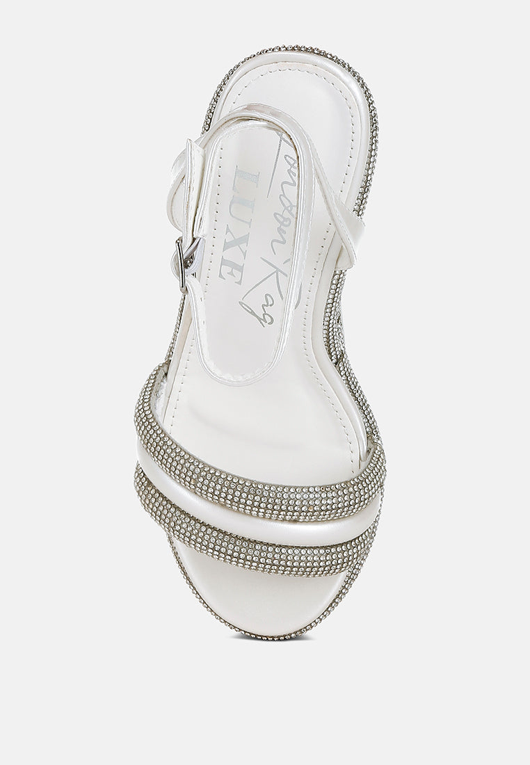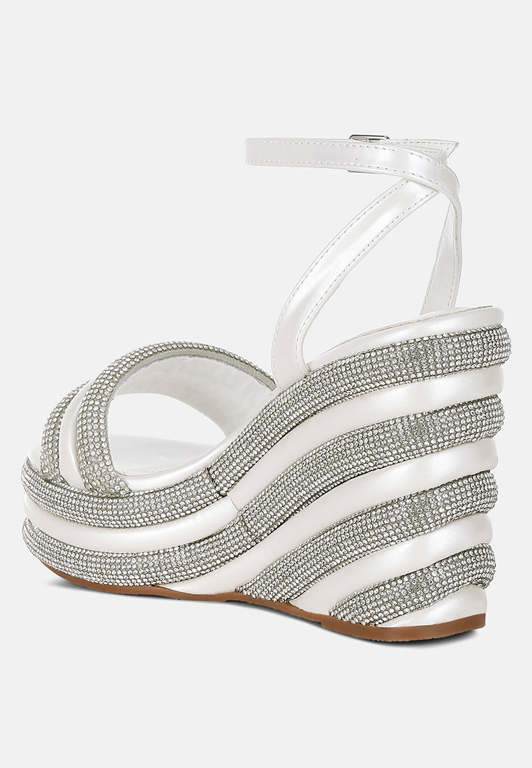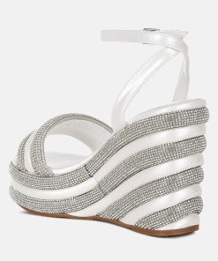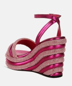 These high wedge heel sandals are the epitome of style! Featuring a gorgeous 4-inch heel, plush cushion insoles, and an adjustable pin buckle ankle strap, these stunning sandals are adorned with rhinestones for a glamorous touch. The dazzling flatforms are perfect for parties, weddings, and bachelorettes.