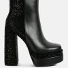 Outshine them all, the rhinestone embellished boots are drop dead gorgeous with platform heel elevation and the bold look of the stiletto heels. These are the perfect party shoes and would also be a dazzling pair with a bridal outfits or wedding heels for winter weddings.