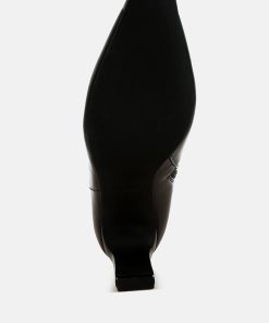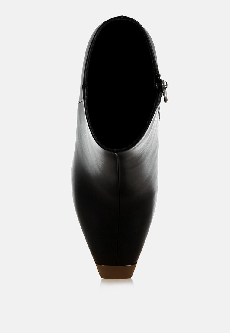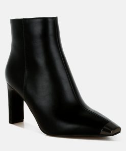 The boots have a minimalist sleek look with the subtle metallic snip cap toe detail and the slim block heels which add to the allure of the boots. The boots are versatile and comfortable with the soft cushion insoles, and would pair beautifully with sharp blazer looks this fall!