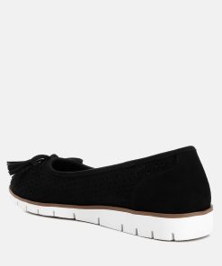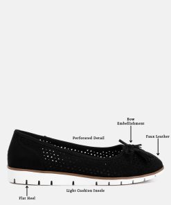 Women’s Shoes London Rag Pacer Perforated Leather Ballerinas | Black