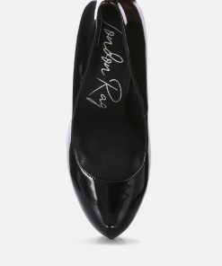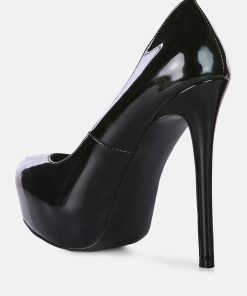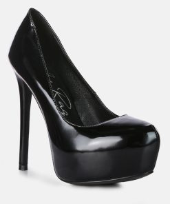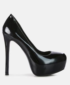 The stiletto high-heeled dress sandals in patent faux leather are an exquisite pair of shoes you can own. These stiletto pumps with a raised platform offer a stylish and elevated look, while the stiletto heels will look stunning on your feet.