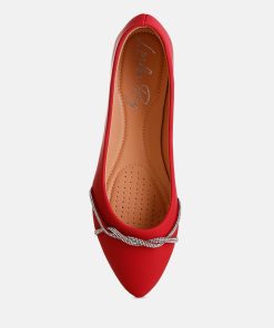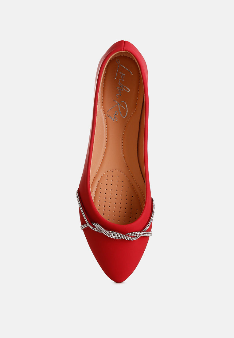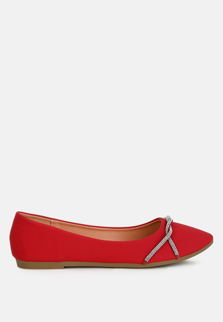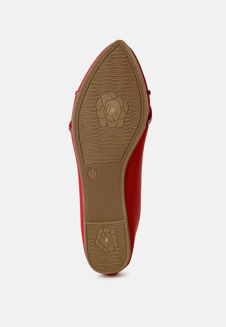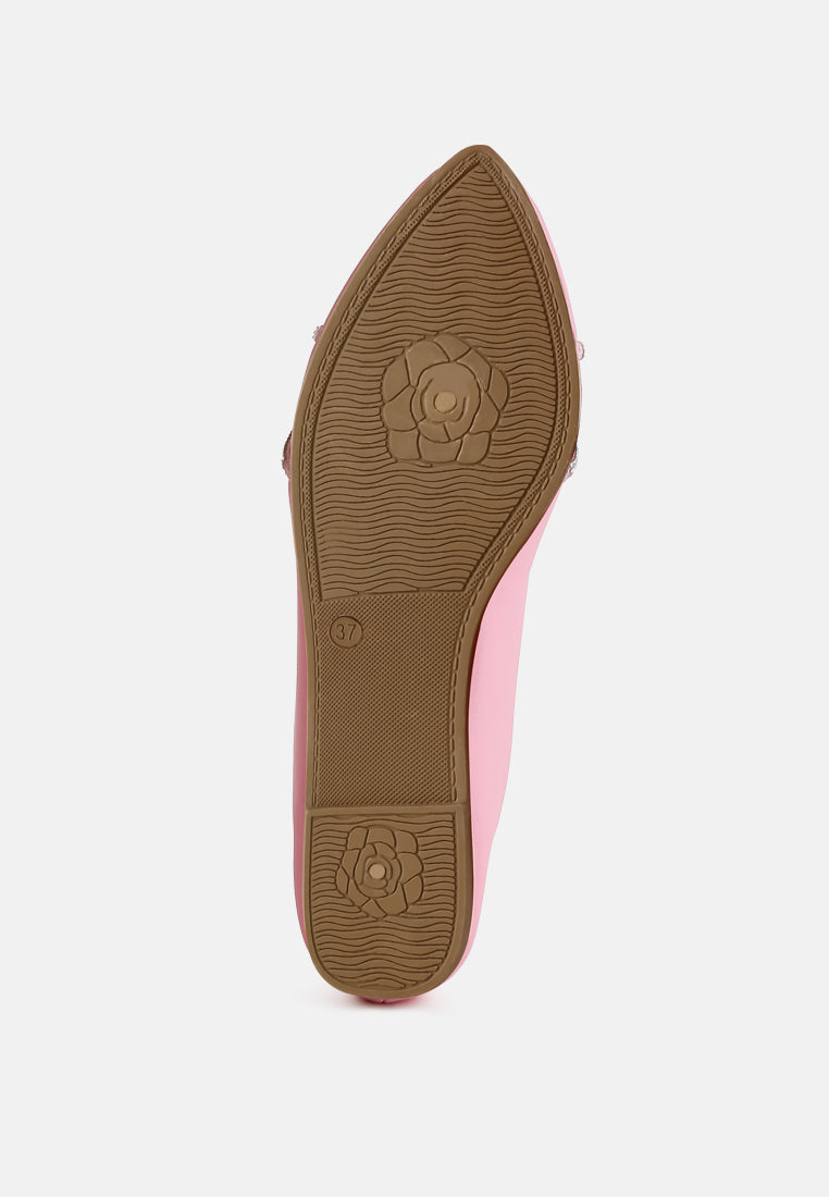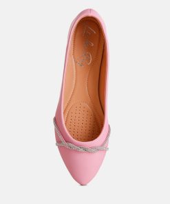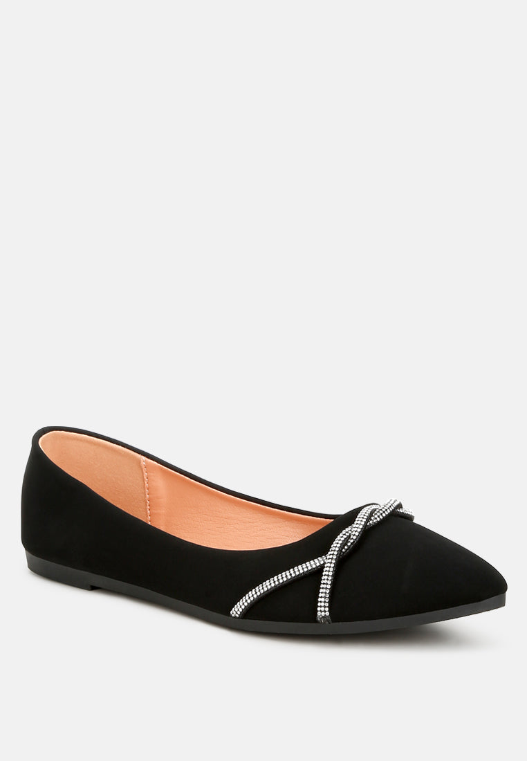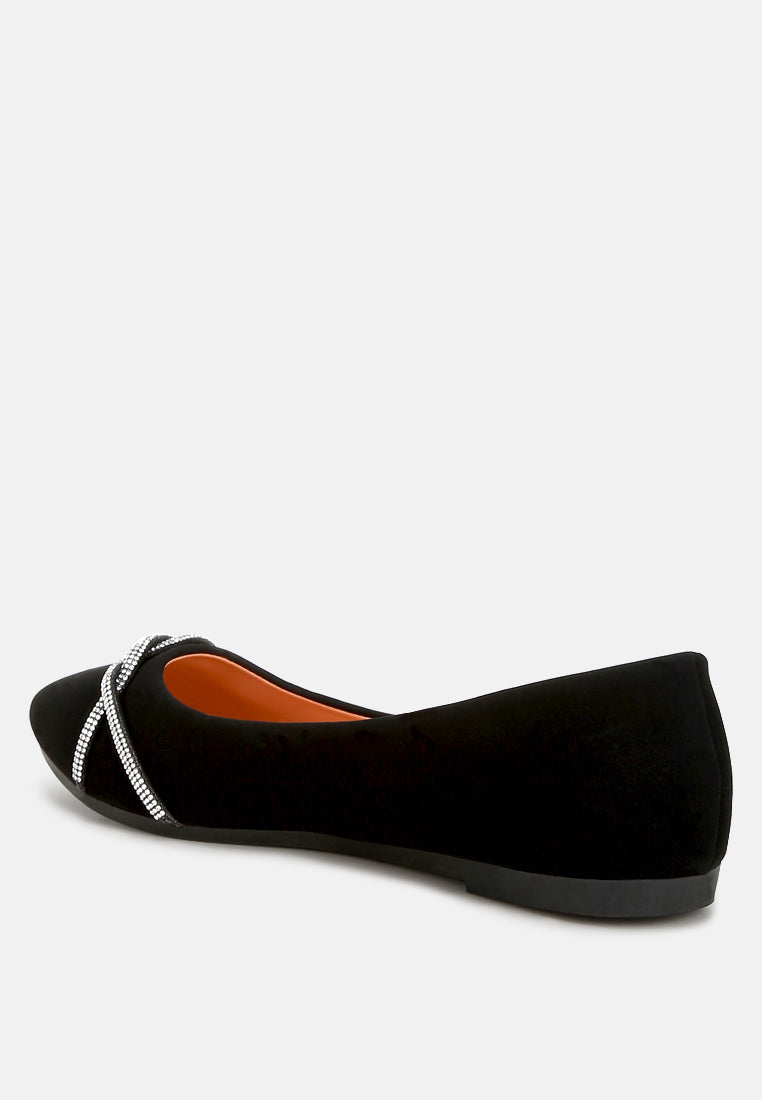 Introducing ballerinas, your new favourite choice for both cute and comfortable styles. Crafted from faux leather, these closed round-toed flats ooze class while the rhinestone detail looks polished. They feature a comfortable cushion insole and flat heels for added comfort.