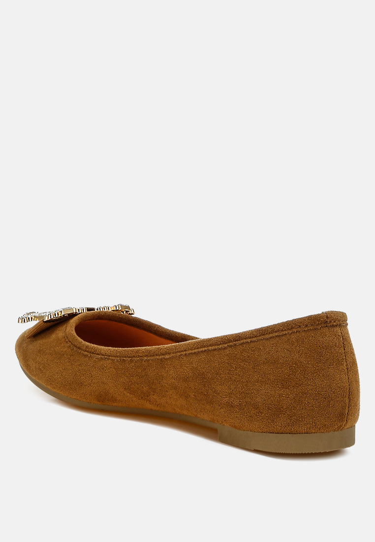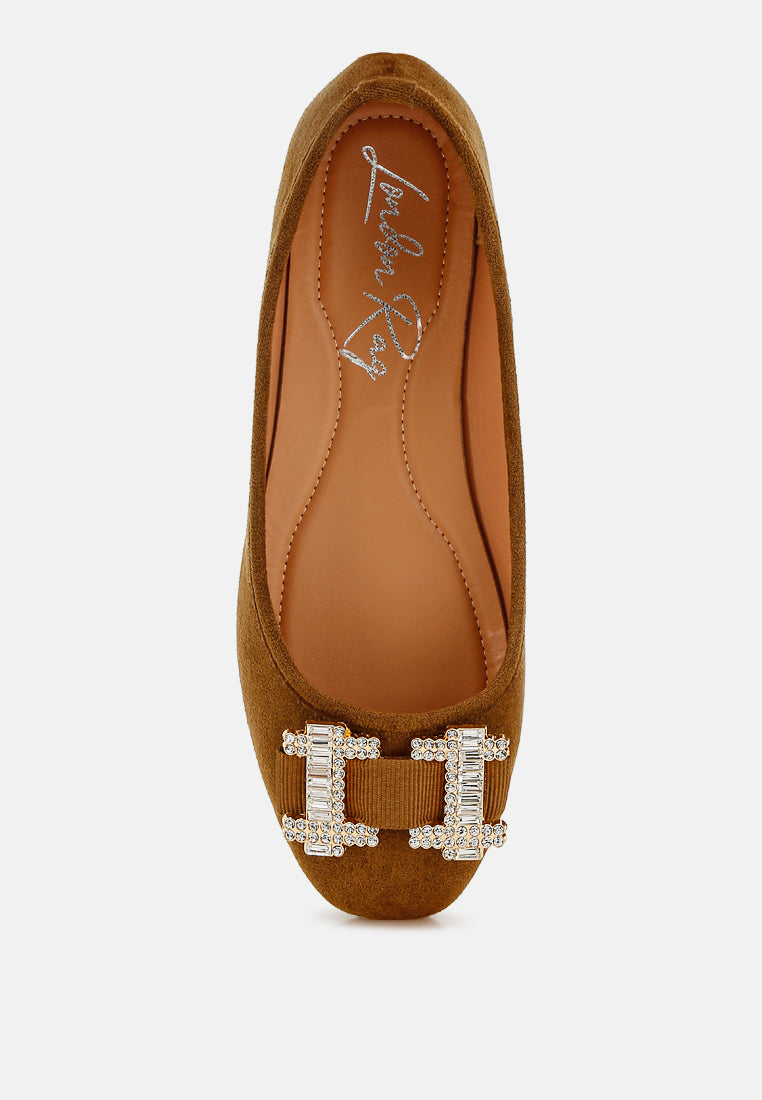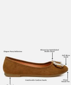 Women’s Shoes London Rag Prajik Rhinestone Buckle Detail Ballerinas | Tan