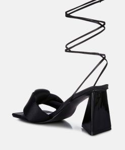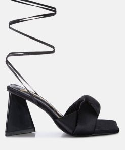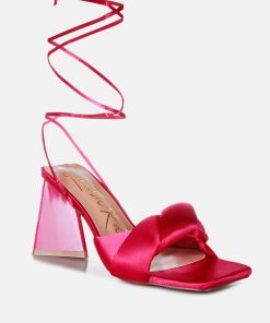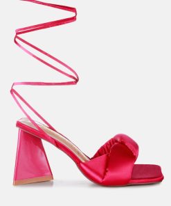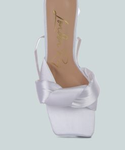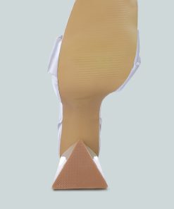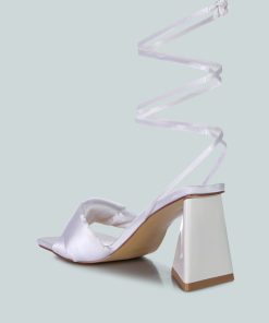 Women’s Shoes London Rag Pristine Satin Strap Triangular Block Heel Sandals | White
