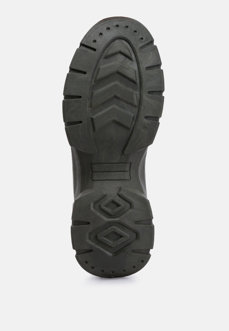 Step out in style with our Chunky Lace Up Boots! These boots are perfect for any occasion, from running errands to a night out in town. The comfortable lug sole will keep your feet feeling supported and cushioned all day long, while the lace-up closure ensures a perfect fit, and the stylish design will turn heads wherever you go.