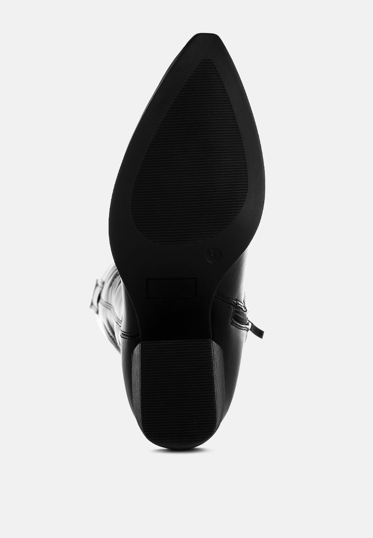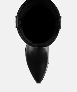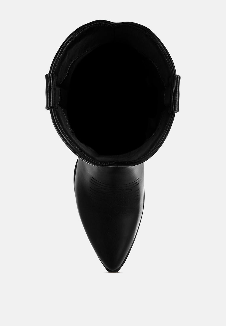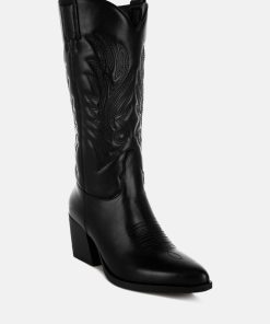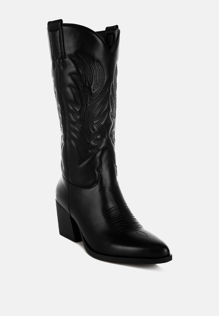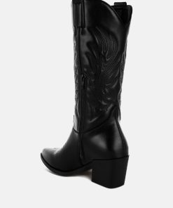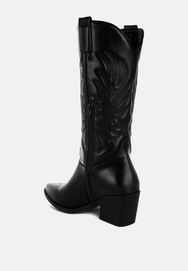 The long cowboy boots are chic and versatile with the classic embroidery detail on the high quality faux leather upper. The pull tabs make them easy to wear while the comfortable cushion insoles give a relaxed fit. The boots are a must-have with their timeless design.