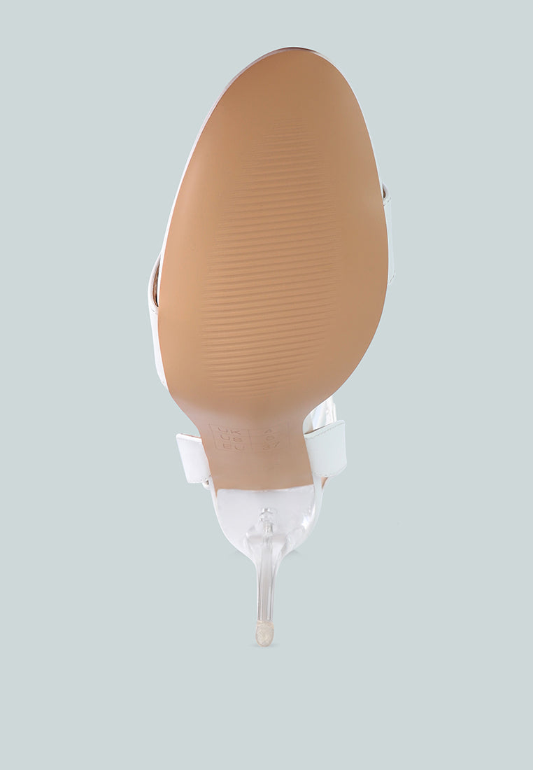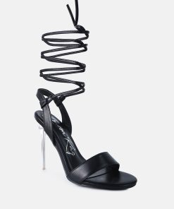 These lace-up sandals are a stunning example of beauty in minimalism, featuring a clear stiletto heel screaming trendy and beautiful. The versatile design ensures maximum wearability, making them perfect for various occasions. Whether you’re a bride, a wedding guest, or a bridesmaid, these shoes will add a lovely finishing touch to your attire.