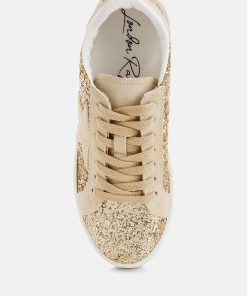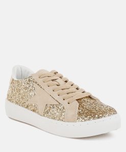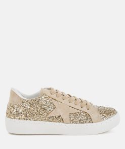 The glitter sneakers are a maximalist dream with the glitter upper and the microsuede star patchwork which adds a contrasting effect to the design of the sneakers. The pair is also quite comfortable with cushion insole and chunky sole which cuts strain and offers a relaxed fit.