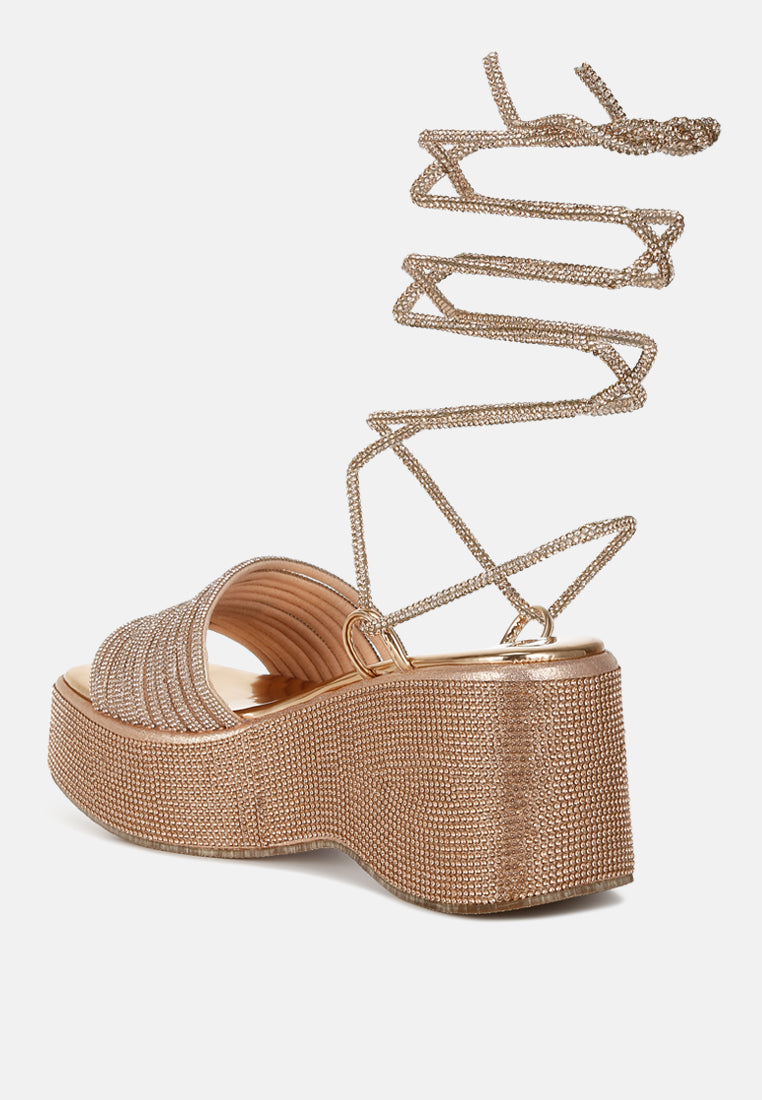 The gorgeous lace-up sandals are the epitome of luxury. Adorned with stunning rhinestone-embellished laces and heels, these sandals are perfect for weddings, bachelorettes, and parties. Whether you’re hitting the dance floor or pairing them with your evening gowns, these luxuriously pretty sandals are sure to impress.