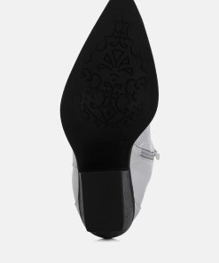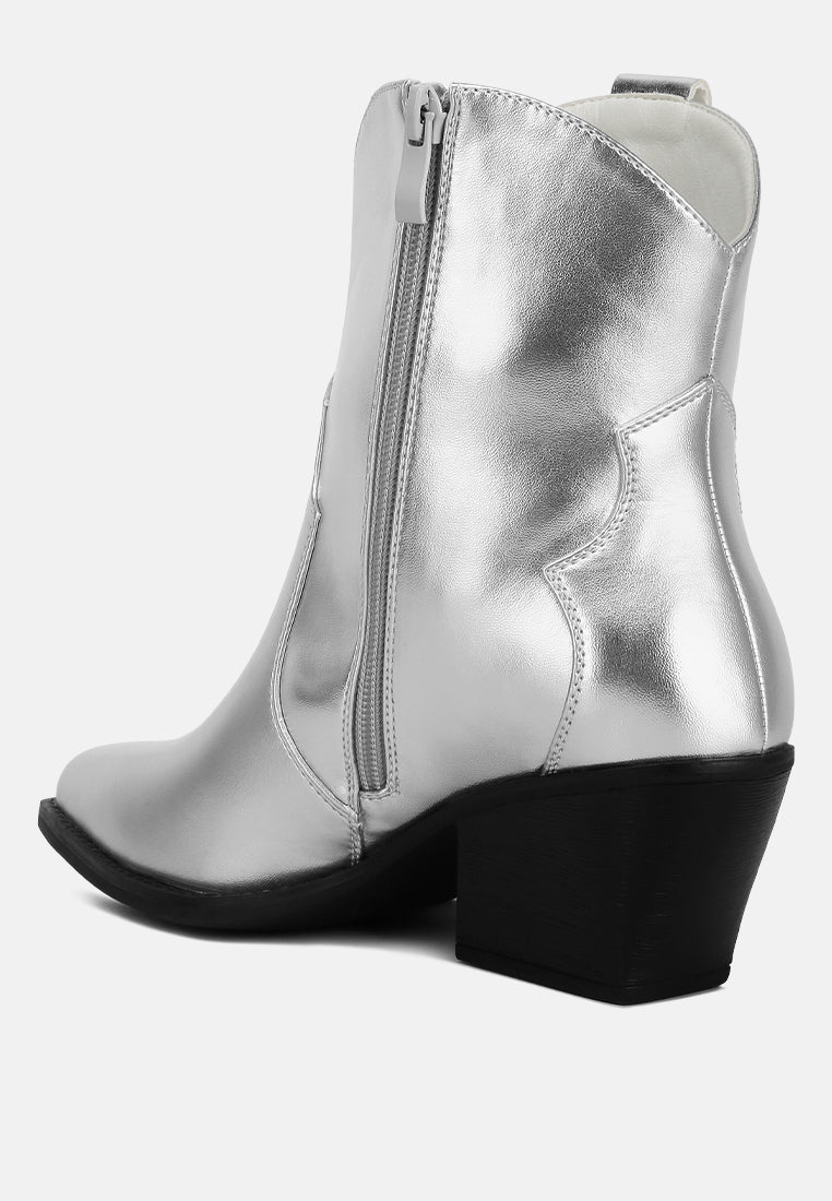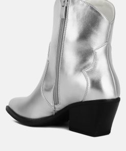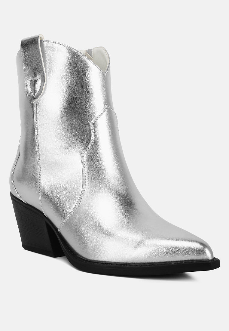 Are eye-catching metallic boots a fashion turn-on for you? With low-stacked block heels, eye-catching mock stitch detail, and light cushion insoles, these metallic boots are lustrously gleaming. They come with convenient pull tabs for easy slip-on and off for you to dance the night away.