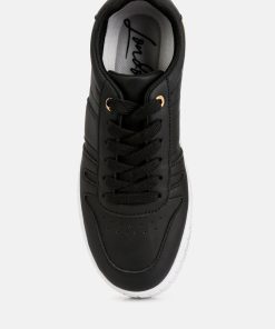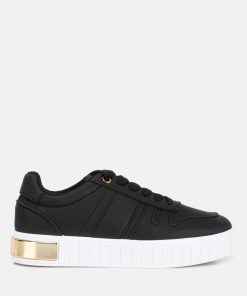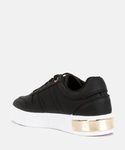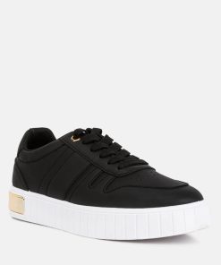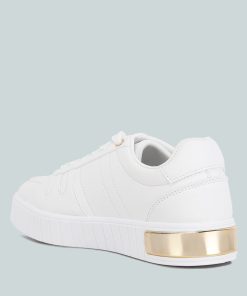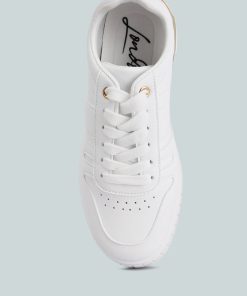 These sneakers are an effortless blend of style and comfort. One of their standout features is the flatform sole, adding a touch of sturdy structure to the design and providing a subtle lift. The gold metallic eyelet detail contributes to the sneakers’ dynamic aesthetic. These sneakers perfectly balance fashion and function, making them a versatile addition to your footwear collection.