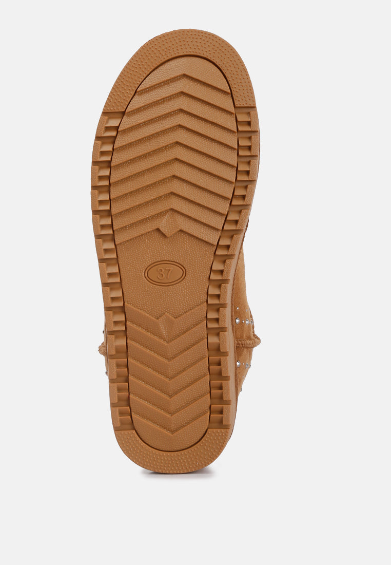 Add a touch of nostalgia and comfort to your shoe collection this year. These rhinestone embellsiehd ankle length boots are trendy, perfectly Y2K, functional for all of your outfits. The best way to dress these up would be with a laced cami and mini skirt in classic 2000s style!