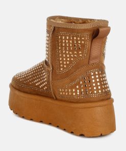 Women’s Shoes London Rag Xoras Chunky Rhinestones Ankle Boots | Beige