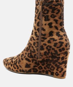 Women’s Shoes London Rag Yara Microfiber Wedge Sock Boots | Leopard